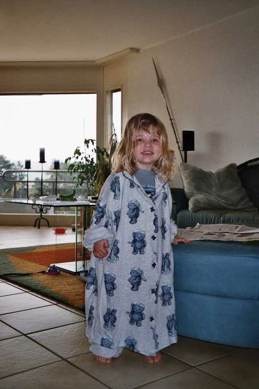 J’aime pas les pantalons et je les enlève. Maintenant, maman me met des salopettes. J’arrive pas à les enlever, ça m’énerve.