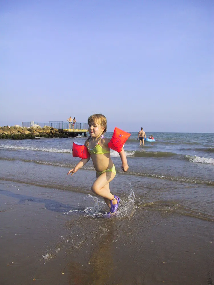 J’adore la piscine, je nage sous l’eau et je fais le toboggan la tête la première.