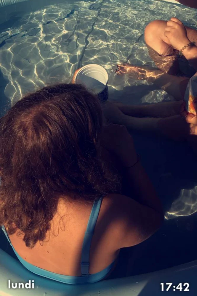 En été, des fois on pique-nique à la piscine le soir. Le meilleur moment, c’est juste avant que le toboggan soit fermé, quand on le fait sans eau.
