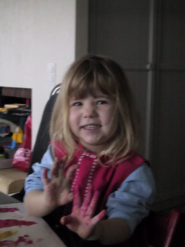 Je voulais m’entraîner à dessiner des ovales, mais mes feuilles étaient trop petites, alors j’ai dessiné sur les murs. Maman est très fâchée.