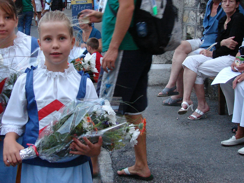 Le 1er août, j’ai été demoiselle d’honneur. À côté de nous, il y avait les enfants qui portaient les torches pour allumer le feu. Le garçon à côté de moi n’arrêtait pas d’agiter sa torche, et j’ai cru qu’il allait me brûler.