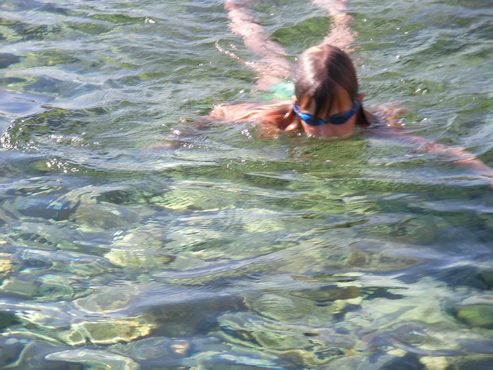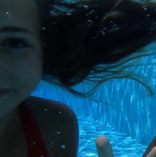 J’adore la piscine, je nage sous l’eau et je fais le toboggan la tête la première.