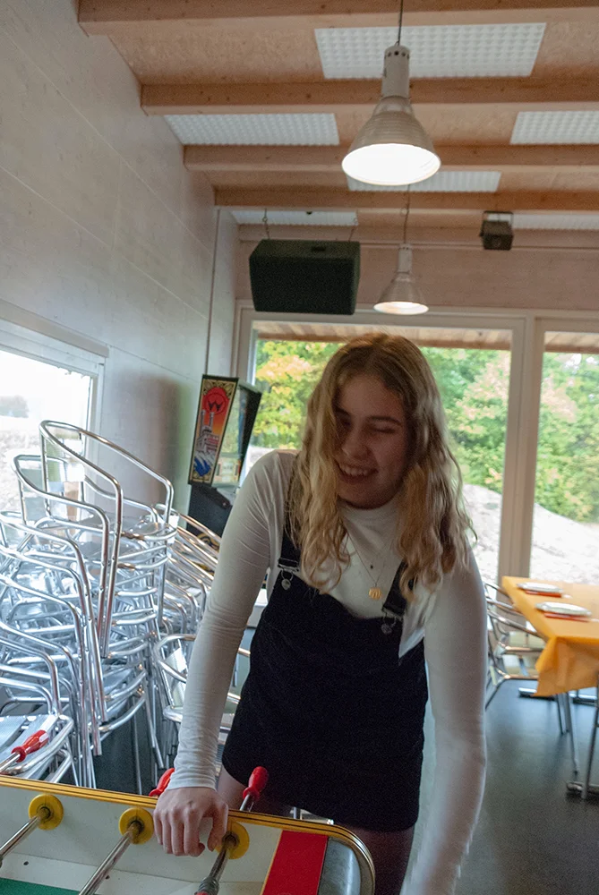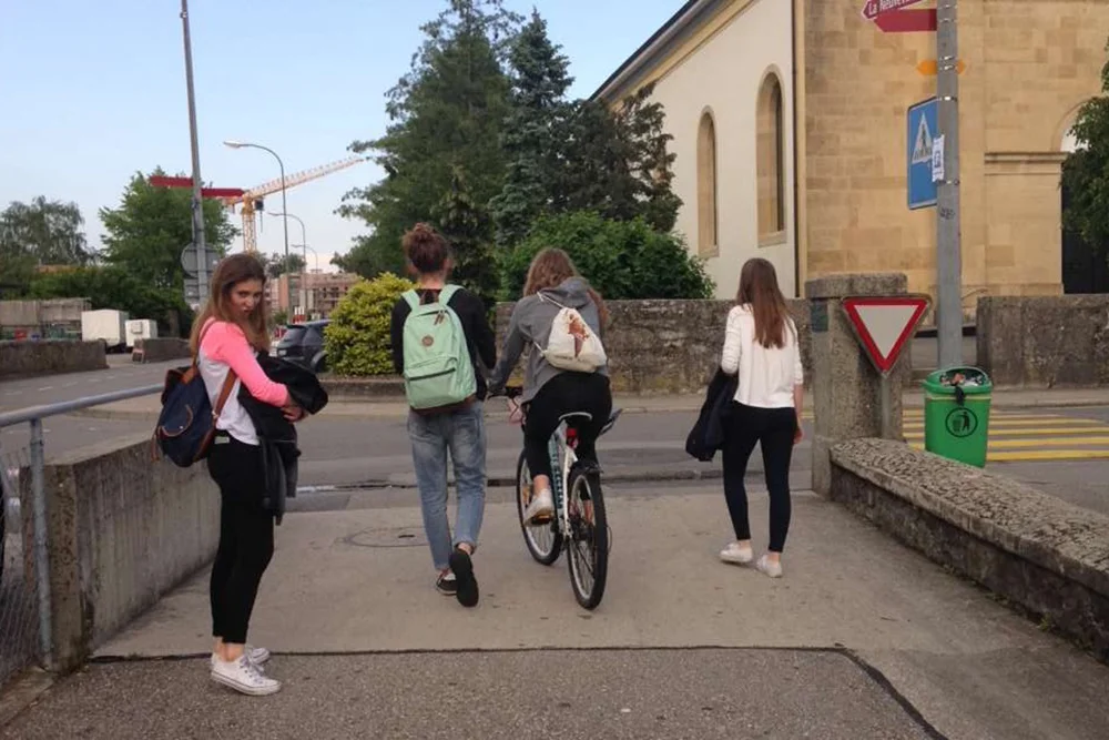 En été, des fois on pique-nique à la piscine le soir. Le meilleur moment, c’est juste avant que le toboggan soit fermé, quand on le fait sans eau.